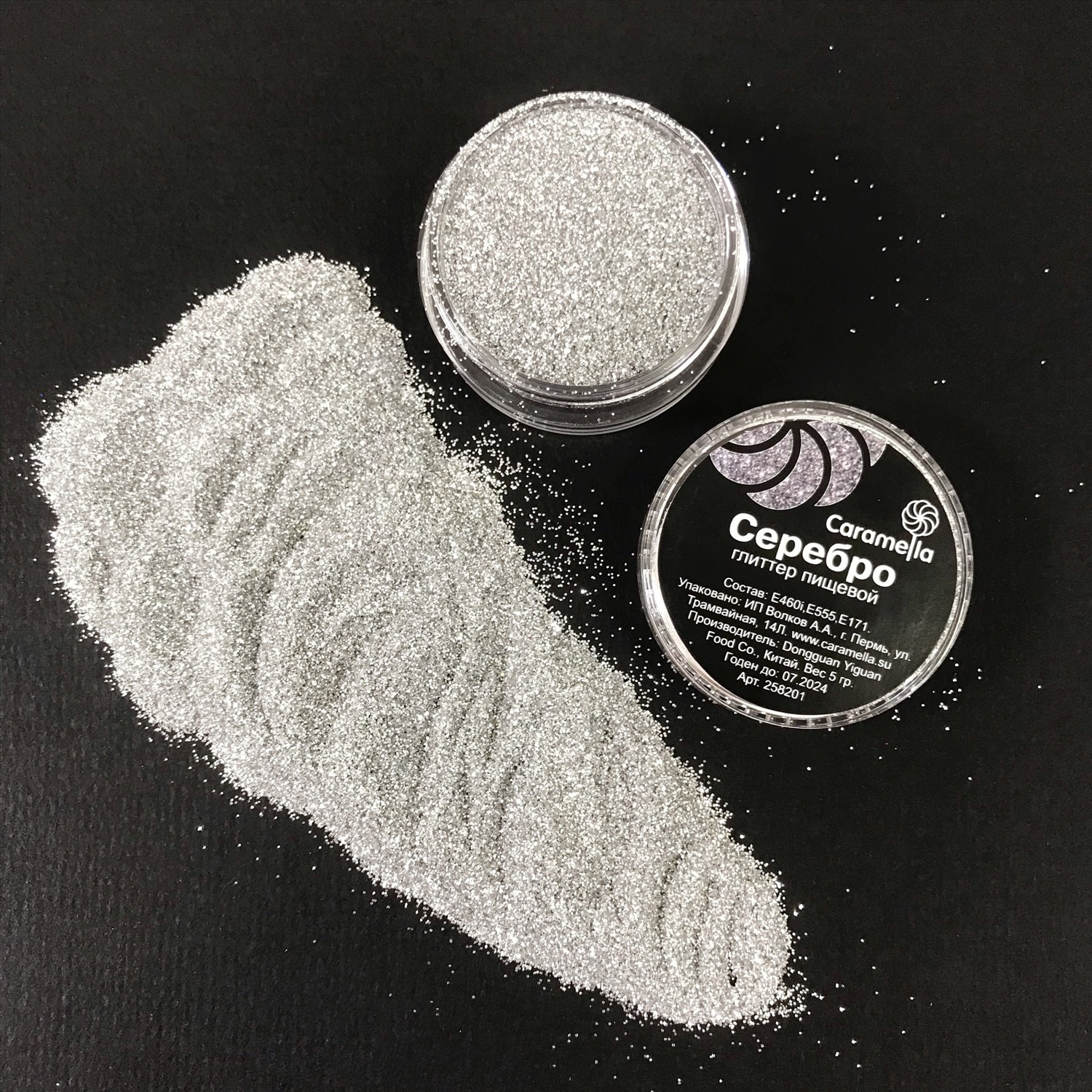 Глиттер Серебро Caramella 5 гр пищевой